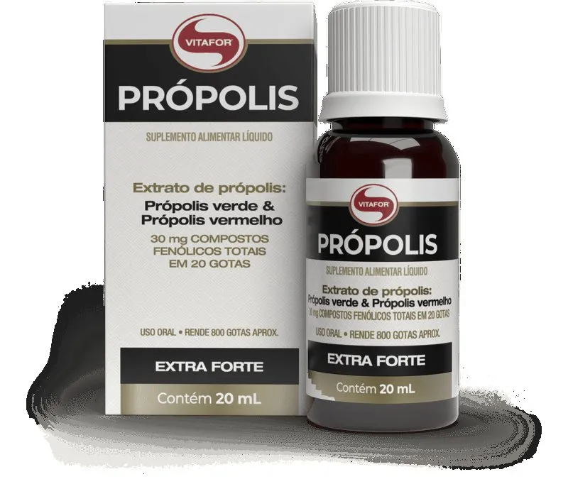 Própolis Líquido - Em Gotas 20mL - VITAFOR O sistema imunológico é responsável por nos proteger de invasores, como vírus e bactérias. Um sistema imunológico fragilizado pode levar ao agravamento de doenças, um tempo maior de cura, o que pode deixar sequelas mesmo após a recuperação5,6. A própolis é produzido pelas abelhas a partir de substâncias coletadas de vegetais, e usado como vedação e proteção da colmeia. Possui propriedade antiviral, antifúngica, antibacteriana e antiparasitária, características estas que auxiliam na proteção do nosso sistema imunológico A composição da própolis depende do tipo dos materiais coletado pelas abelhas. A própolis verde, proveniente do alecrim do campo, e vermelho, de origem da planta “rabo de bugio”7. Estudos apontam que o consumo da própolis pode auxiliar na melhora da imunidade, saúde intestinal, na prevenção do envelhecimento precoce das células, auxiliar na redução da inflamação, entre outros benefícios3,4. O Própolis da Vitafor é composto por blend de própolis verde e vermelho ultra concentrado, proporcionando maior quantidade de compostos fenólicos.