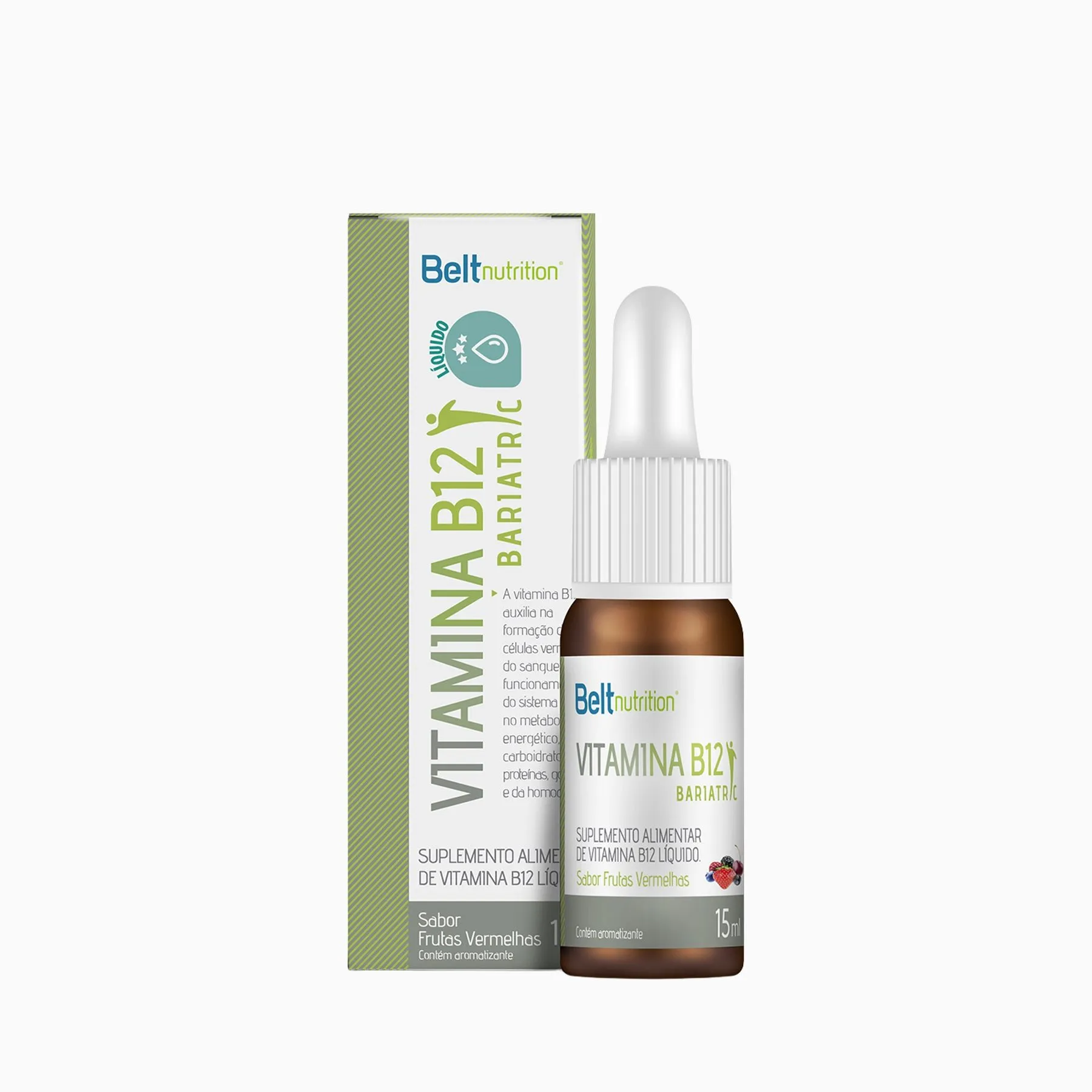 Vitamina B - Belt B12 Bariatric Líquida - BELT NUTRITION As deficiências nutricionais de vitaminas do complexo B, principalmente de vitamina B12 são comuns após a cirurgia bariátrica, podendo chegar em 64% de prevalência. A deficiência severa pode causar anemia, perda de sensibilidade cutânea, parestesia, fraqueza, alterações de humor, perda de memória e em caso de gestantes, malformações no tubo neural do feto. Os estudos mostram que a ingestão adequada de vitamina b12 é eficaz para pacientes submetidos a cirurgia bariátrica. Indicado para: Bariátricos Gestantes Idosos Vegetarianos e veganos
